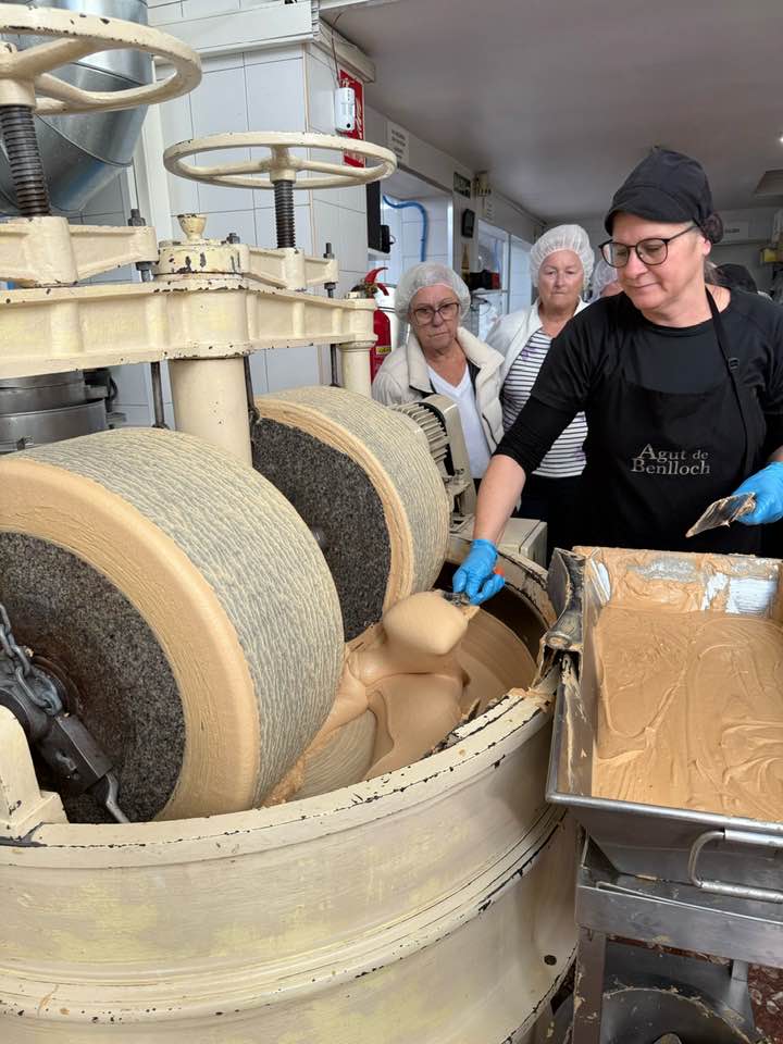 It was a lovely sunny day last Friday morning as 25 members set off on the Spanish Culture & Cuisine “Discovering Culla” tour. Our first stop was at the Agut Turrones factory in Benlloc, a small family-run factory which produces nougat and marzipan year-round, using traditional methods and following family traditions. We were shown how the turron and marzipan is made and sampled quite a few of the products, chocolate, marzipan, turron and pan de higo. At the end of our visit everyone was given a complimentary 200 grams bar of soft Marcona almond nougat.