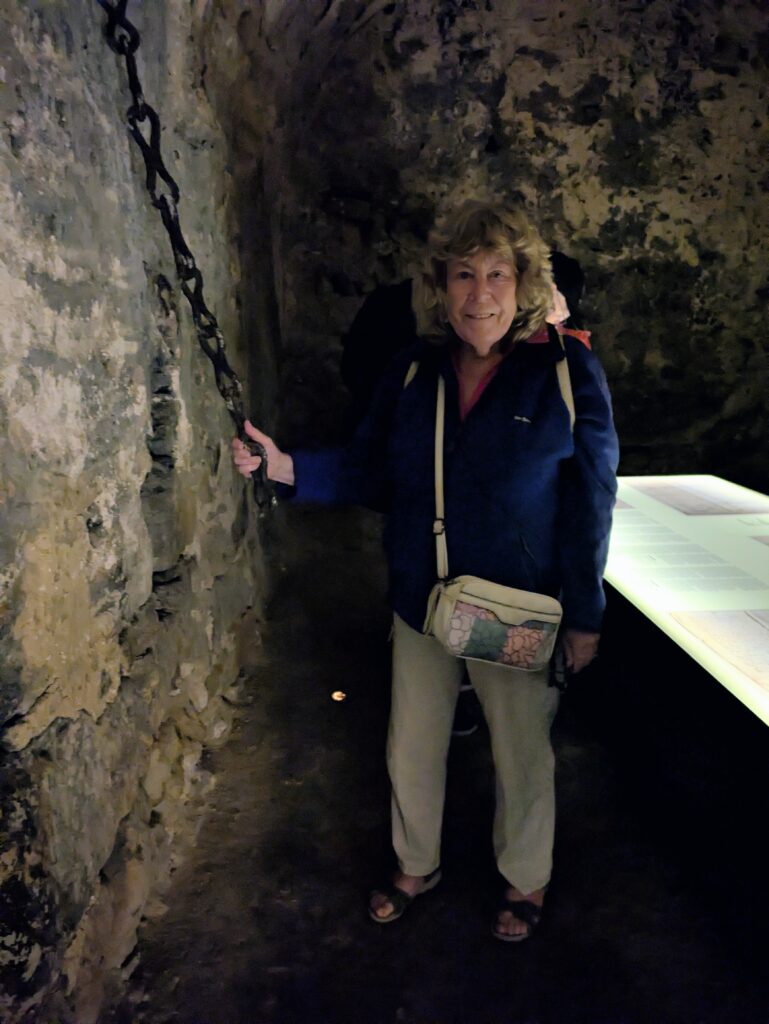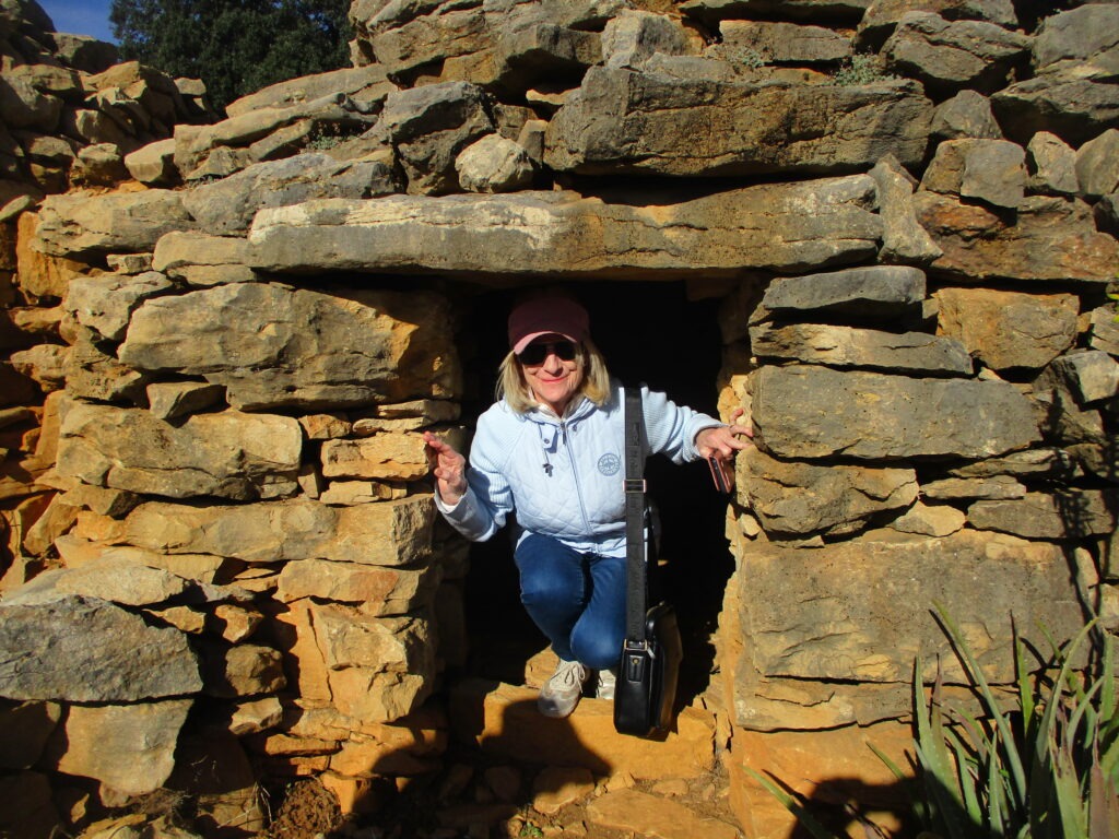 After a good breakfast, on Saturday morning we visited the nearby town of Culla. Our guide, Isabel, has lived in Culla her whole life…and is English! She gave us an interesting tour of the town and although the sun was shining the very strong wind made it feel very cold – Maria certainly had the right idea about dressing to keep warm, and looking lovely at the same time! We visited the prison, the church and the ”hospital”. The latter was really more of a building for the poor women of the town but has now been set up to show a schoolroom. From the viewpoint at the top of the town you could see the Montgo, 175 kms away!