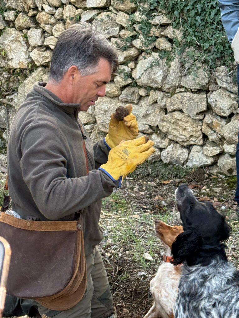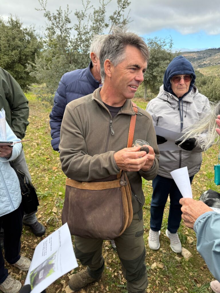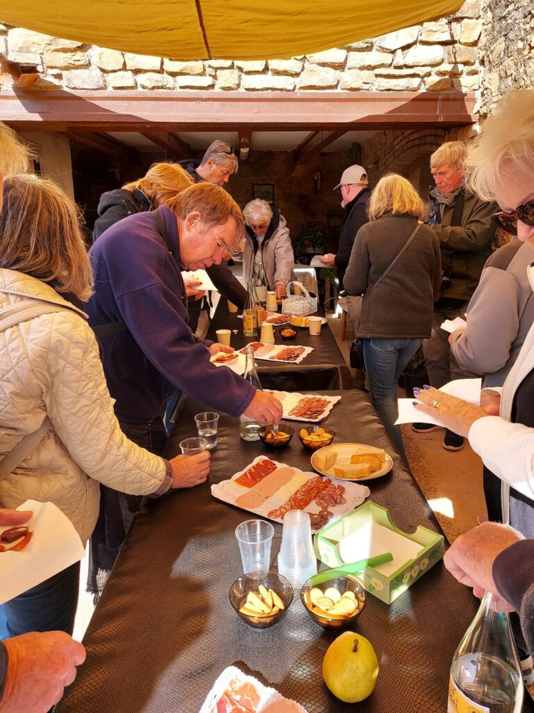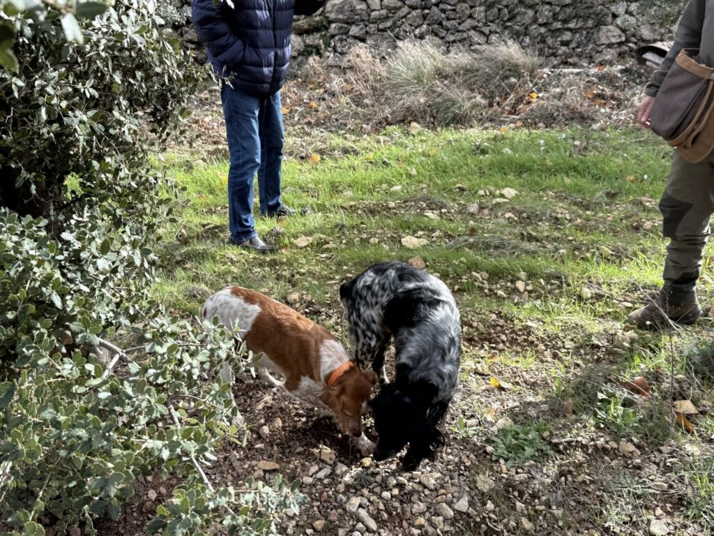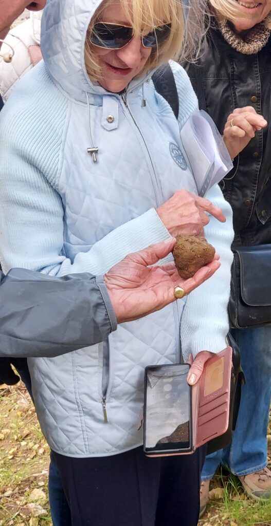 After some refreshments we drove a little further on to meet Daniel, a local cattle farmer and part-time truffle hunter. Despite the very strong wind, we walked with Daniel to a field where he gave us a lot of interesting information about truffles, and his spaniels showed us how they smelt out the truffles. Unfortunately, the ones that they found were damaged by the recent heavy rains.