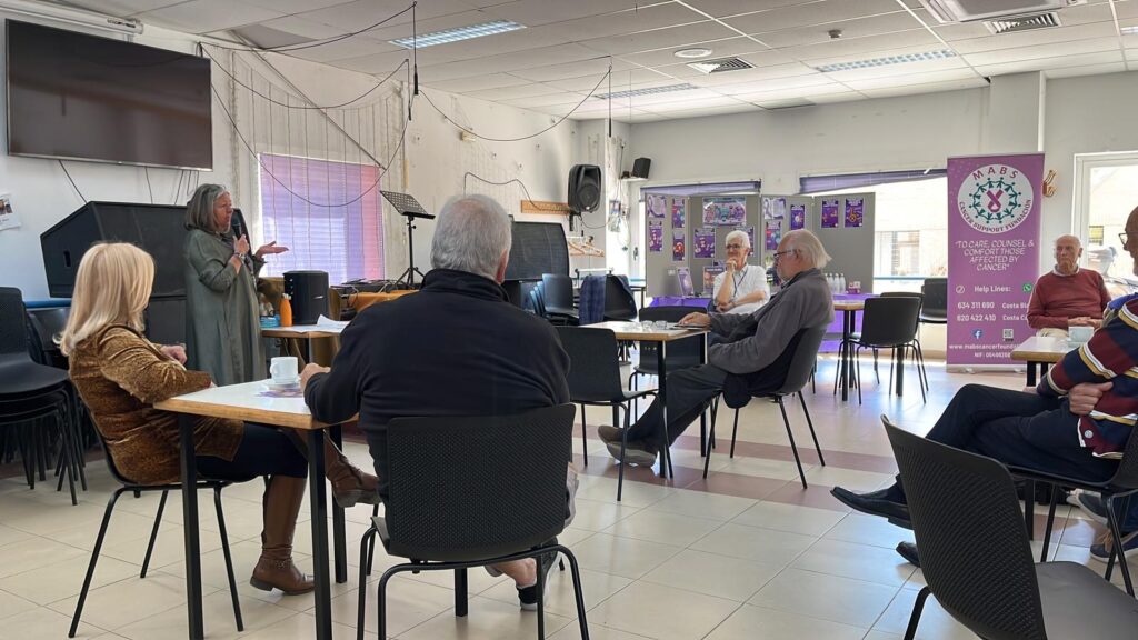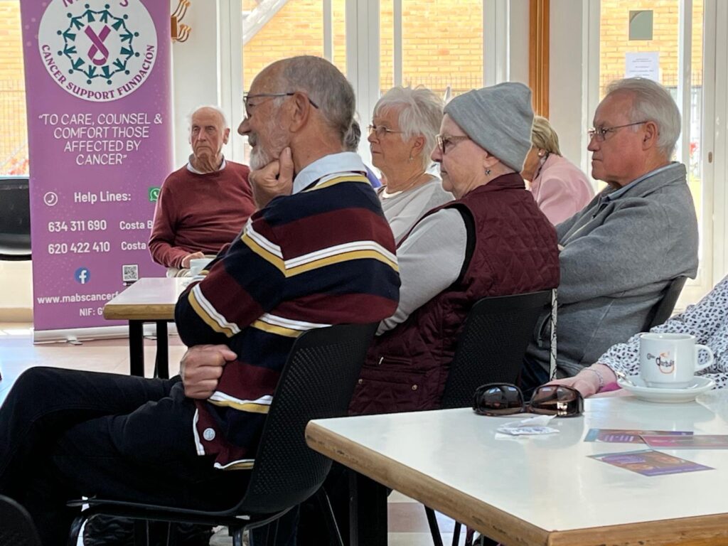 Everyone enjoyed a complimentary refreshment and had a nice chat with old friends before Frances Love from MABS (Marina Alta Breast Screening) gave us a short presentation about their incredible work for those affected by cancer (all types – not just breast cancer).