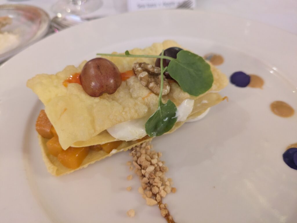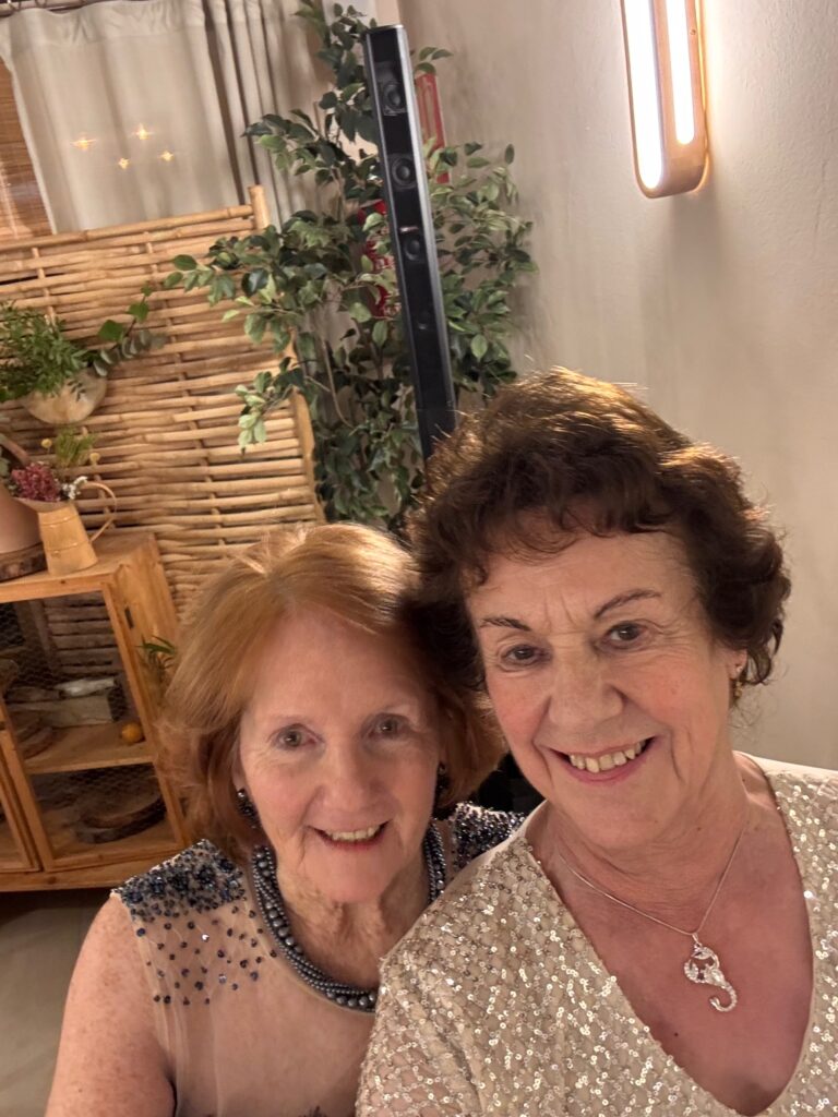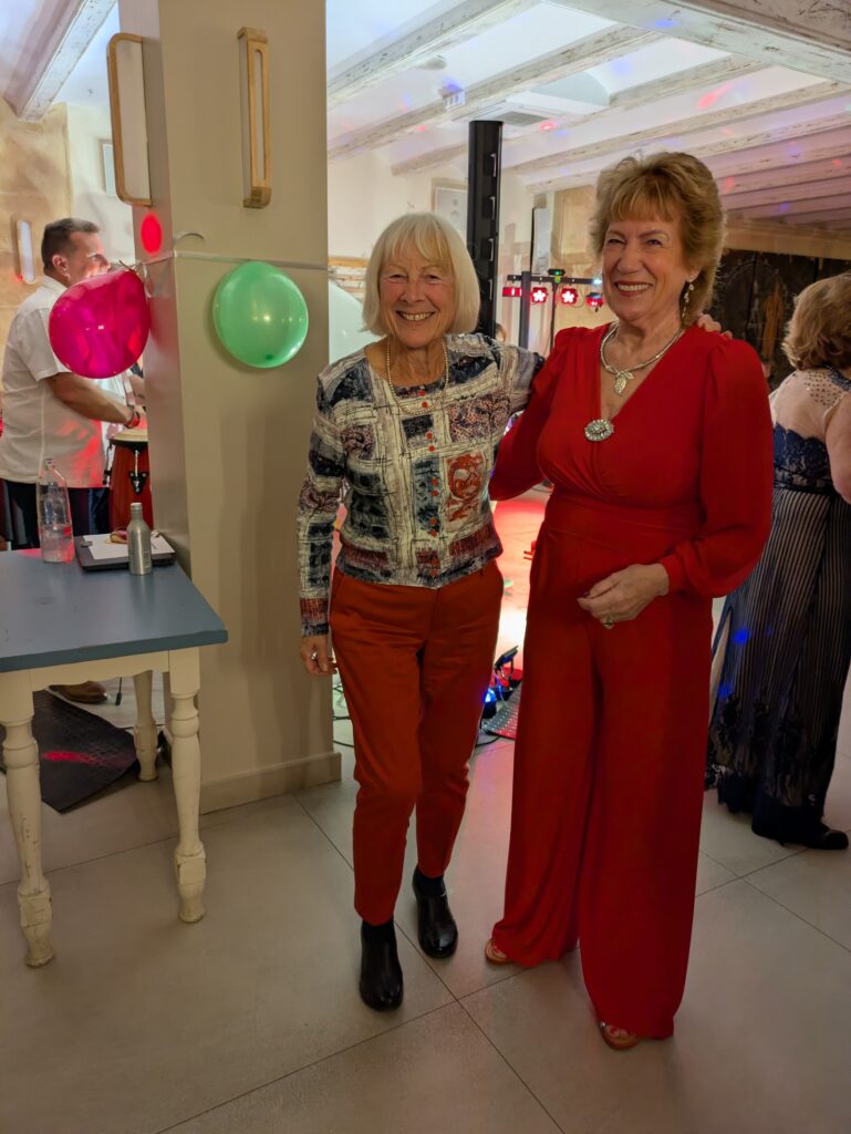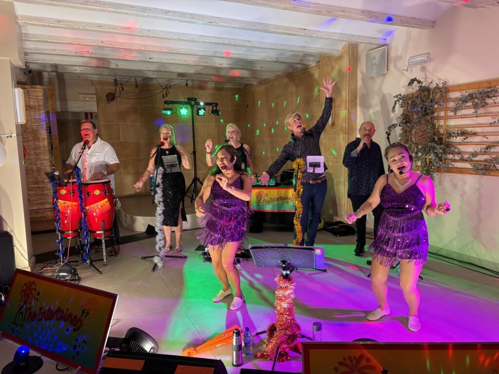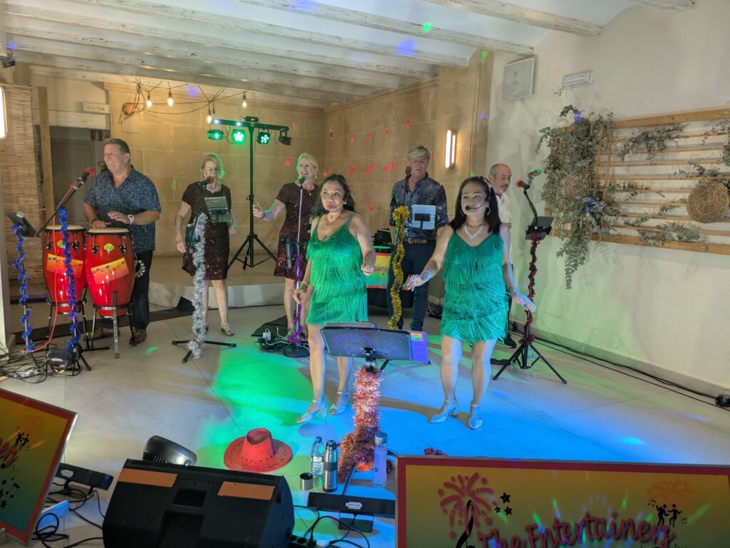 An excellent dinner was served by an attentive team of waiters, led by Emilio. A special favourite for many was the starter: Crispy Millefeuille with goat cheese and diced pumpkin. The Entertainers began the first part of their show around 8 pm, but their great voices and music soon had everyone up and dancing. As dessert was served, it was time for us all to sing happy birthday to Mallory once again! For the short interval, the group had prepared a list of disco music for everyone to dance to.