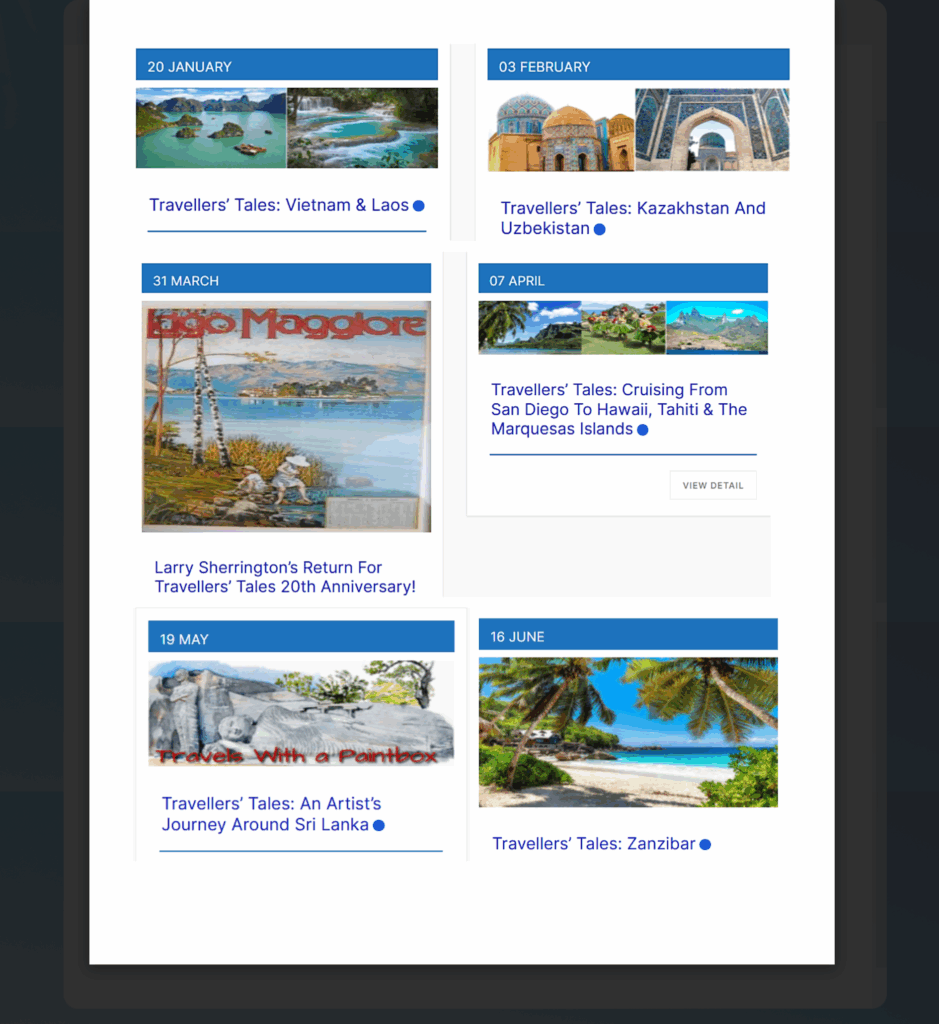 Below you will see the Travellers Tales programme for January – June 2026. I am delighted to say that Larry Sherrington, who gave the first presentation to the group in March 2006, will be returning to give another presentation for the 20th Anniversary Celebration of Travellers Tales in March 2026! We will be celebrating with Cava & Cake!