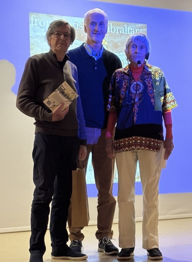 But the biggest surprises were saved for the finale. John revealed he’d penned a book about this very journey—and as if that wasn’t enough, Pat Kitching, a Javea U3A member and daughter of one of the “Curious Cyclists,” Stacey Blake, joined him on stage.