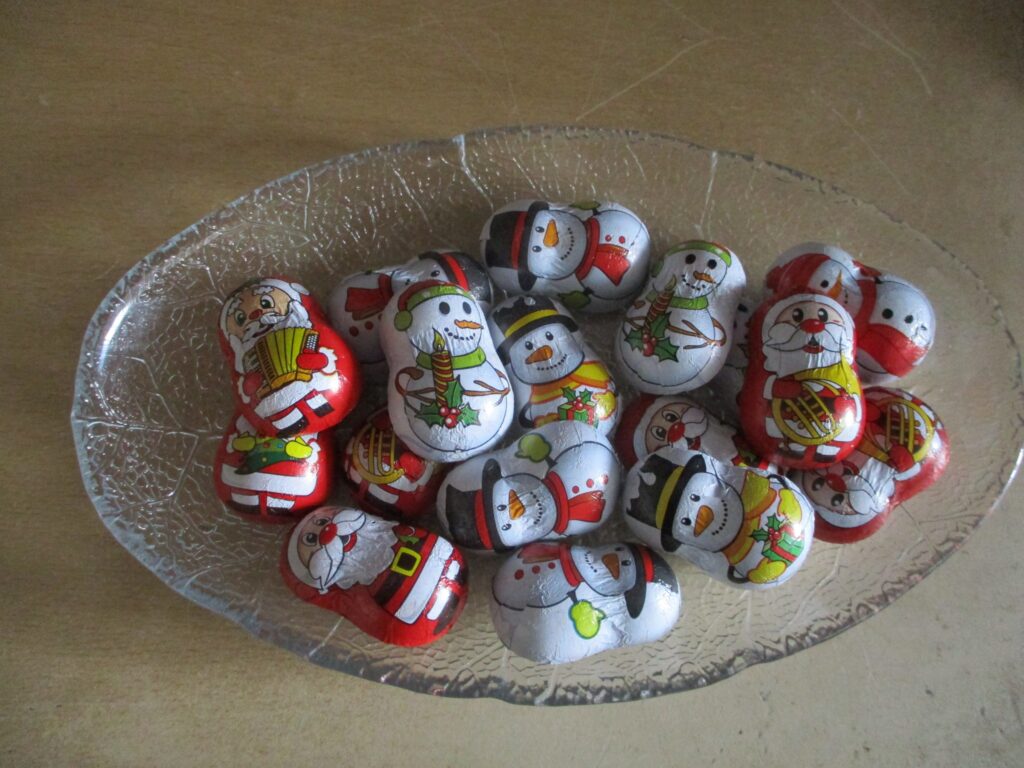 After the high temperatures of this last week, it was back to warmer clothes again for this week’s walk. 30 members joined me for a new walk to the group, introduced by my husband John, around the hills and paths behind Les Fonts. It was quite varied with wide tracks in places, and then a trickier bit down through the forest. The sun did make an appearance part way round, when it turned quite warm. As all the group behaved themselves, I decided to treat everyone to either a Snowman or a Father Christmas Chocolate!!