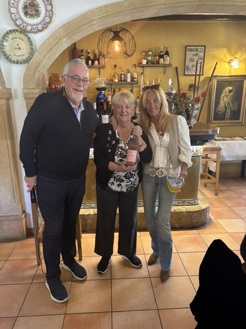 Sally drew the raffle — four tickets, four bottles of wine, four pleased faces — and
